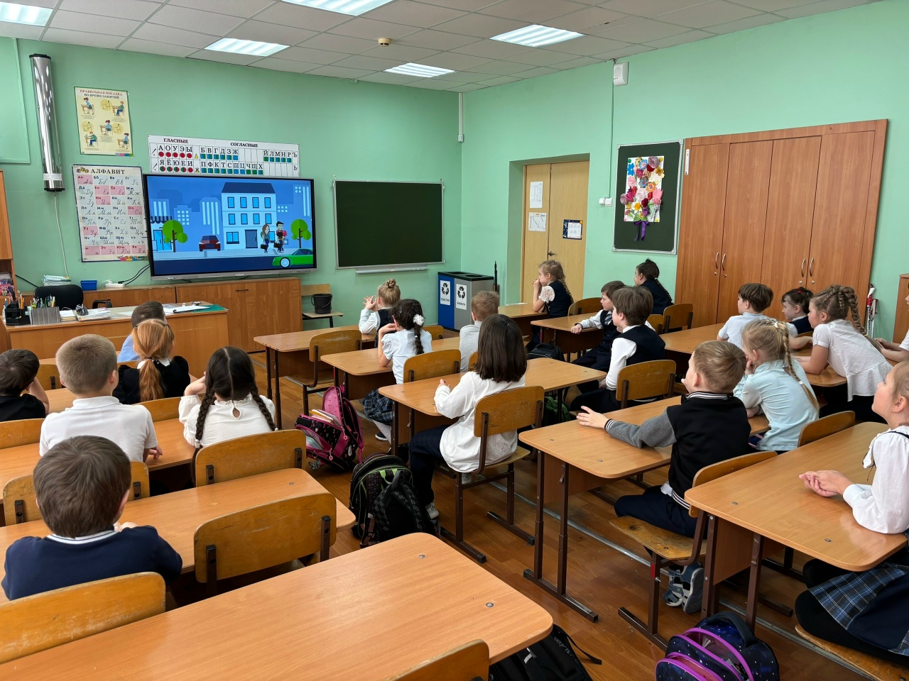 Ребята прослушали лекцию, которая была дополнена яркой подробной презентацией на экране, активно участвовали в викторине, делились жизненными ситуациями о «злостных нарушителях», узнали об основных дорожных знаках и о том, что такое «фликеры»