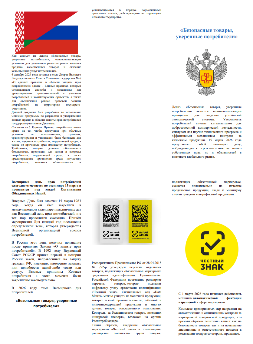 Девиз «Безопасные товары, уверенные потребители» является основополагающим принципом для создания устойчивой экономической системы. Уверенность потребителей служит катализатором для добросовестной коммерческой деятельности, стимулом для научно-технического прогресса и